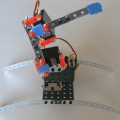 This robot arm is very simplistic, is uses only 2 servos, one for the “shoulder” and one for the “elbow”. Its main purpose is to experiment with ways to control it. |